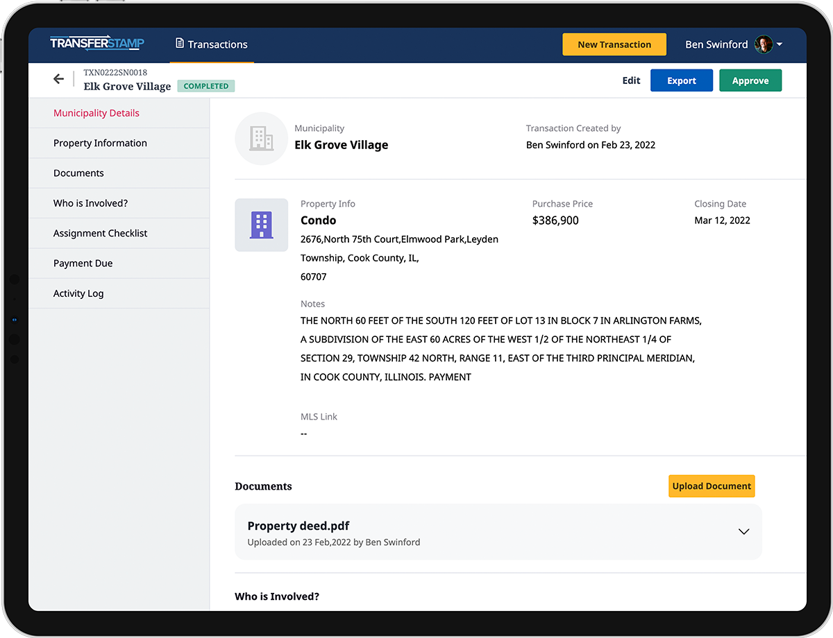 - Links the relevant transaction parties (municipality, attorneys, realtors, title company, buyer/seller)